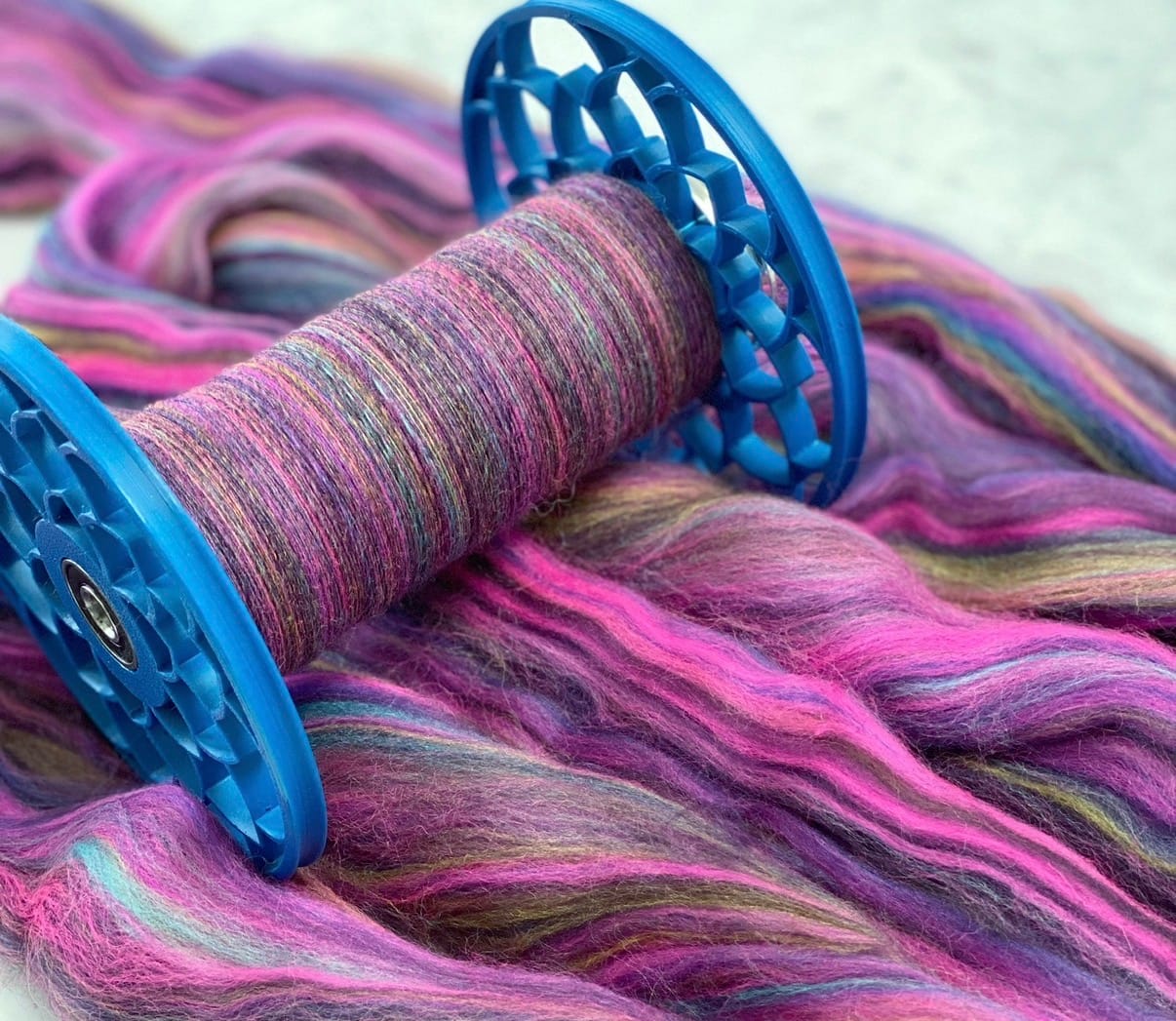 We want to see what’s spinning off your wheel! Send us a photo of what’s currently on your bobbin and include a few details: the fiber content, any fun notes about the spin, and what you’re planning to make with it (sweater? socks? art yarn chaos? 👀).